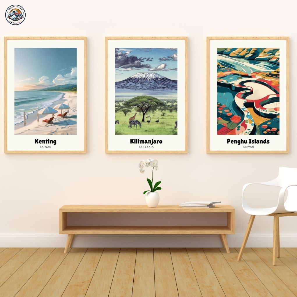 Discover the beauty of global destinations through our stunning AI digital download prints, available instantly. Meticulously crafted and enhanced with a slightly textured background that adds warmth and unique character, these artworks transform your home or office.