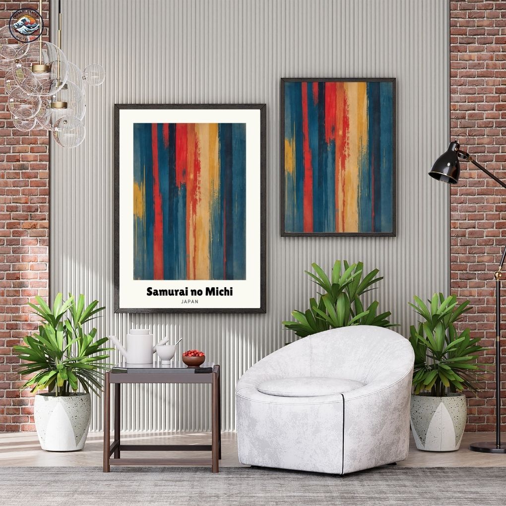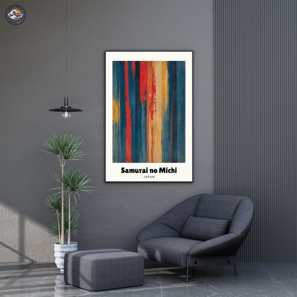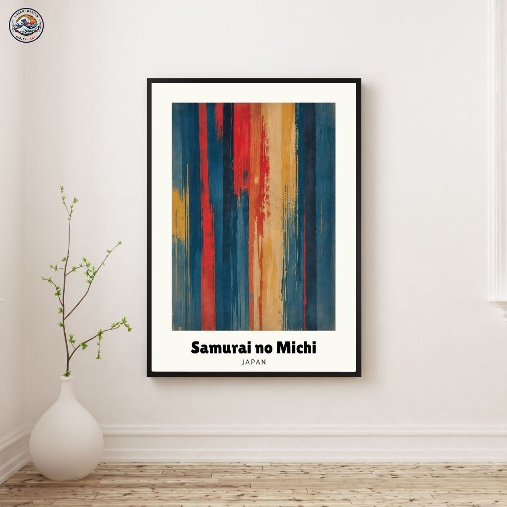 The Path of the Samurai (Samurai no Michi) is a visual metaphor for a life of discipline, honor, and purpose. The bold, vertical stripes represent an unwavering forward journey, marked by challenges and the passage of time. It is a testament to a steadfast spirit, where every step is deliberate and the path is the destination itself.