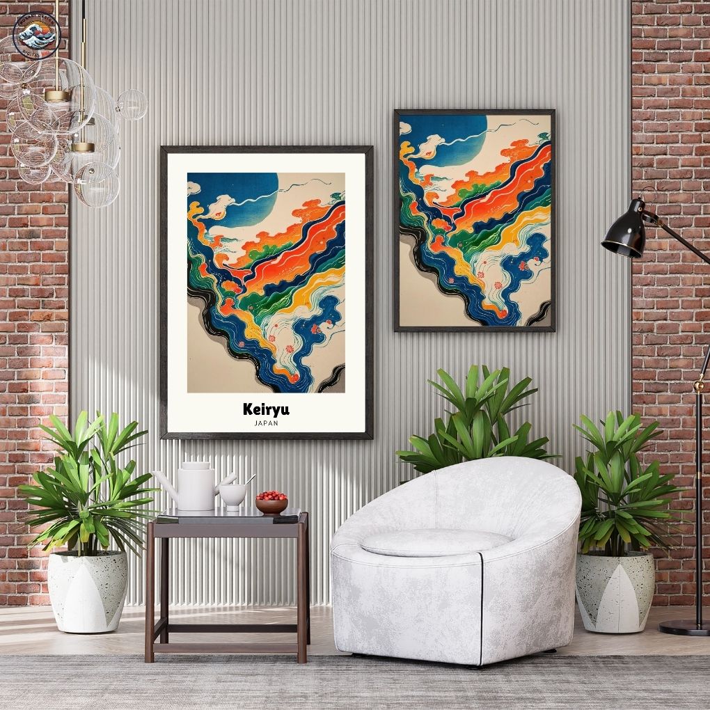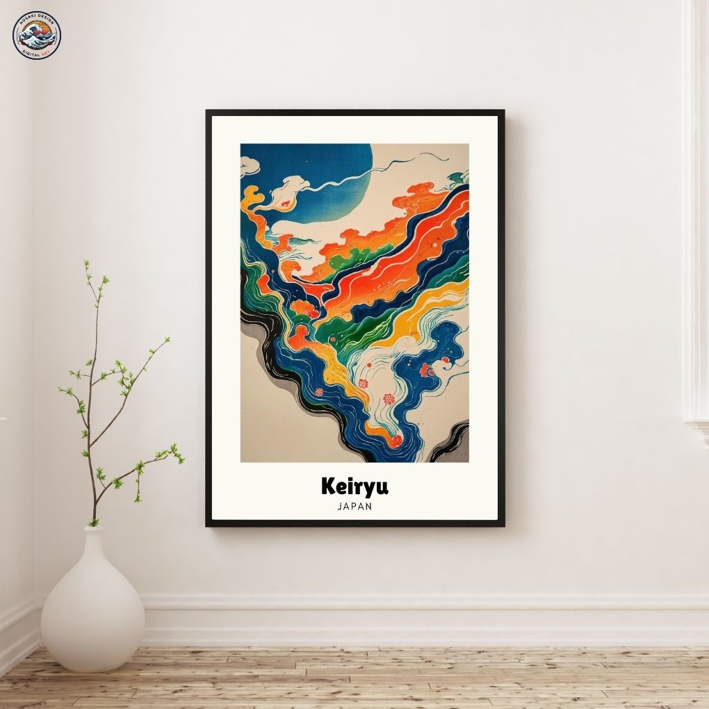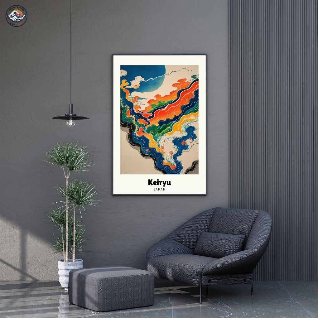 Keiryu refers to a clear, swift-flowing mountain stream that carves its path through a rugged landscape. It is a powerful pulse of nature, a dynamic and relentless current that dances over rocks and through valleys. The sound of its rushing water is a symbol of life and persistent energy in the quiet heart of the mountains.