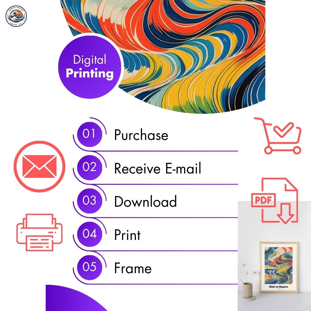Banish boring walls NOW! Japan Flow of Time Art's downloadable collection is your weapon against visual monotony. Download high-resolution brilliance and detonate color and life across your home – bedroom, office, living space, kitchen – everywhere! Instant access. Instant impact. Redefine your reality, one download at a time!