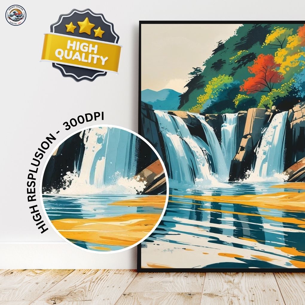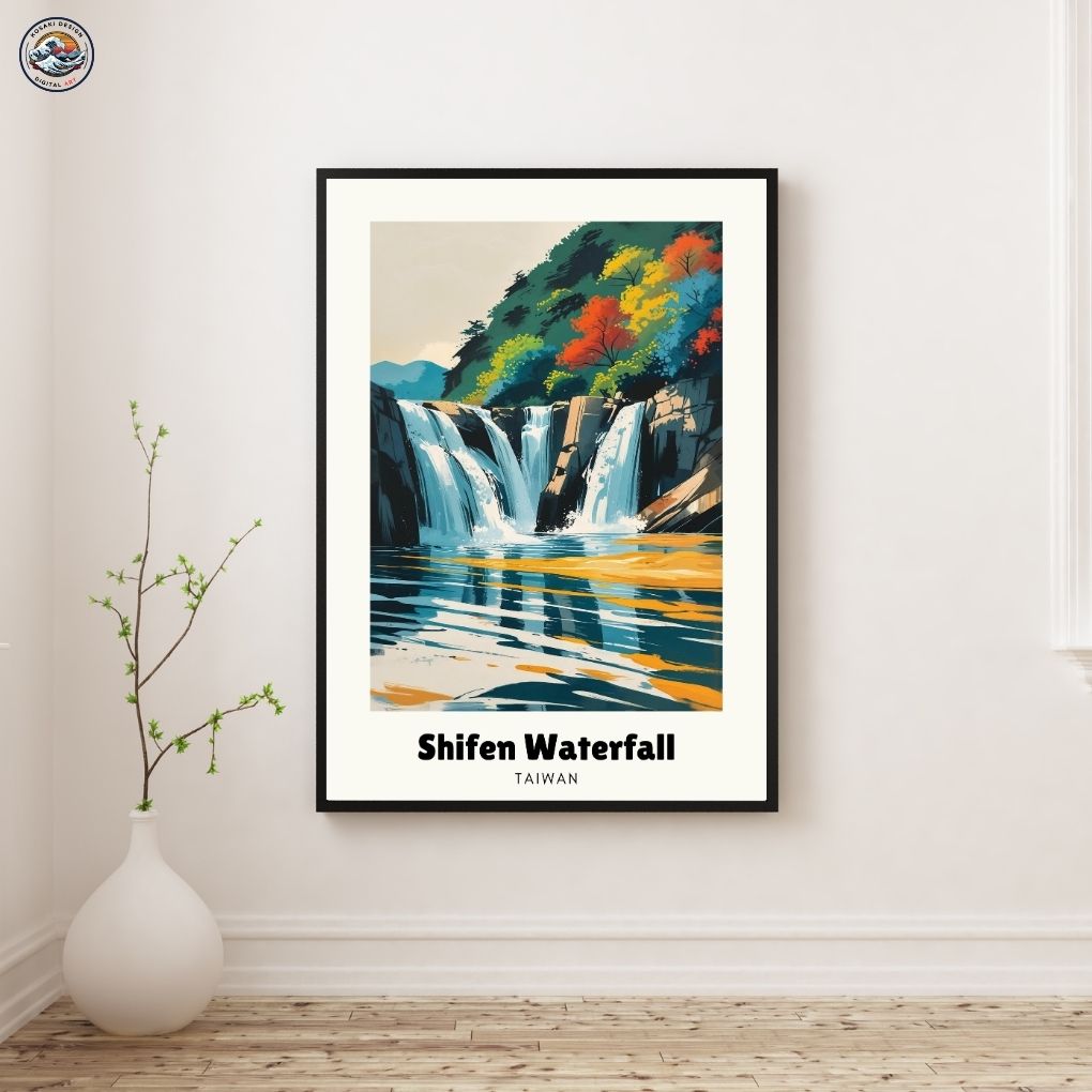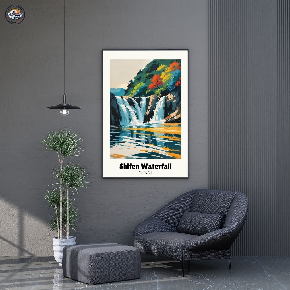 Walls dead? Download Taiwan Shifen Waterfall Art. Bedroom, office, living room, kitchen – blast them with vibrant, instant art. Upgrade NOW. Enjoy this AI-generated product!!