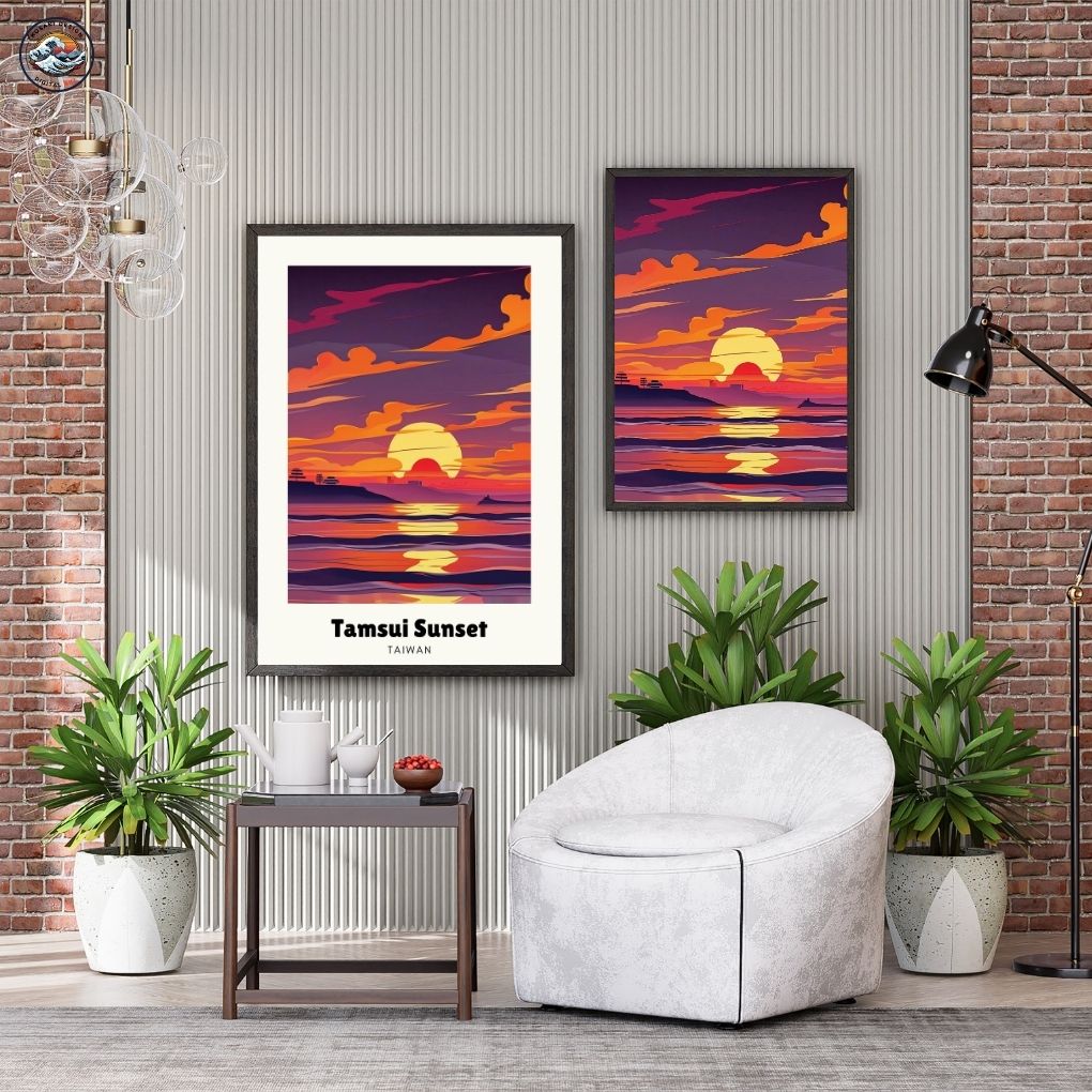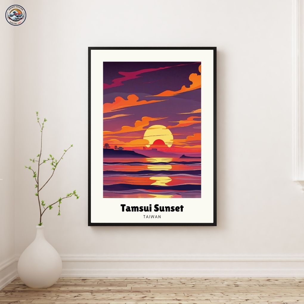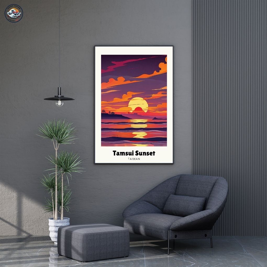 Walls dead? Download Taiwan Tamsui Sunset Art. Bedroom, office, living room, kitchen – blast them with vibrant, instant art. Upgrade NOW. Enjoy this AI-generated product!!