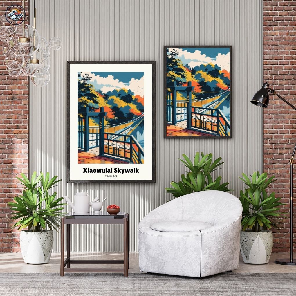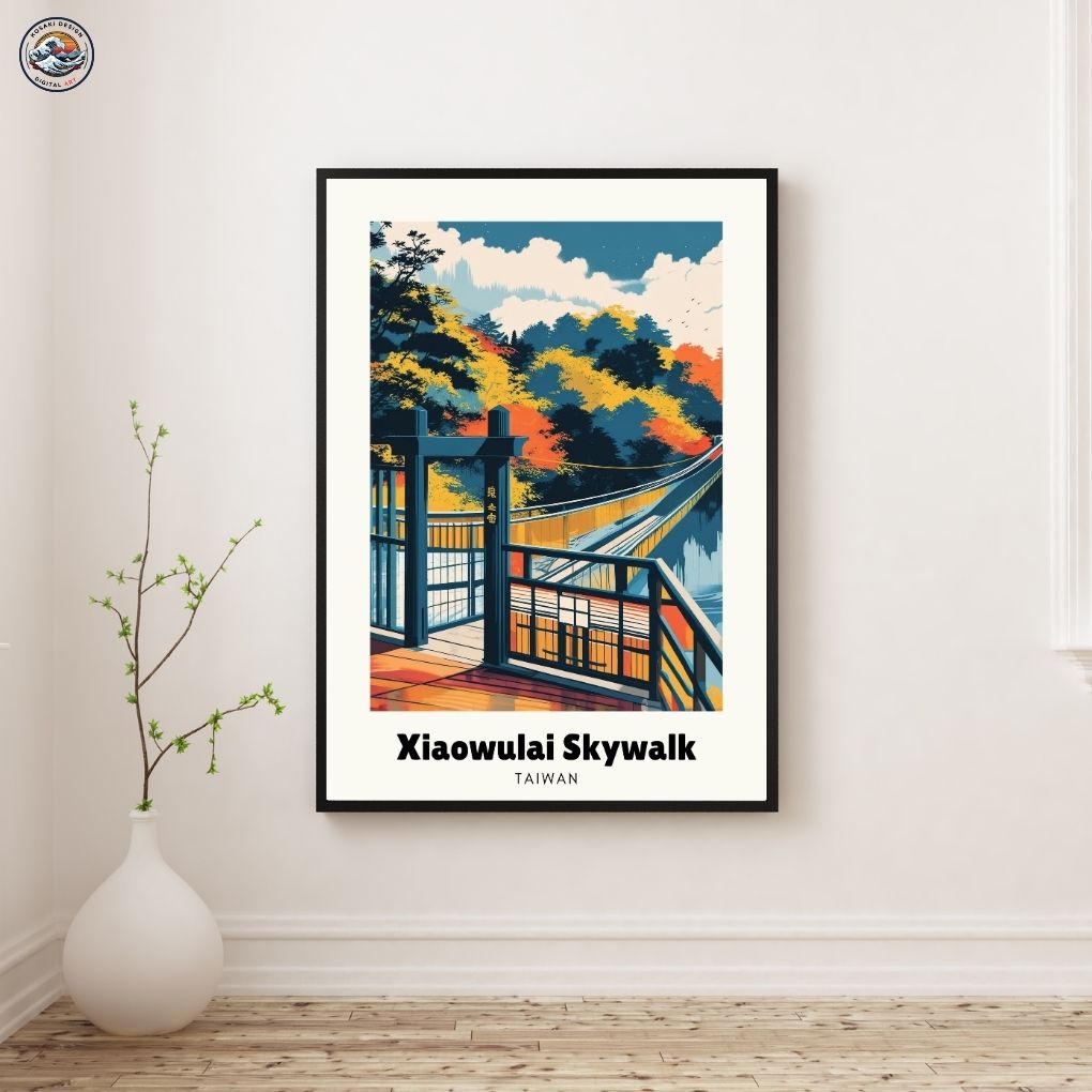 Walls dead? Download Taiwan Taoyuan Xiaowulai Skywalk Art. Bedroom, office, living room, kitchen – blast them with vibrant, instant art. Upgrade NOW. Enjoy this AI-generated product!!
