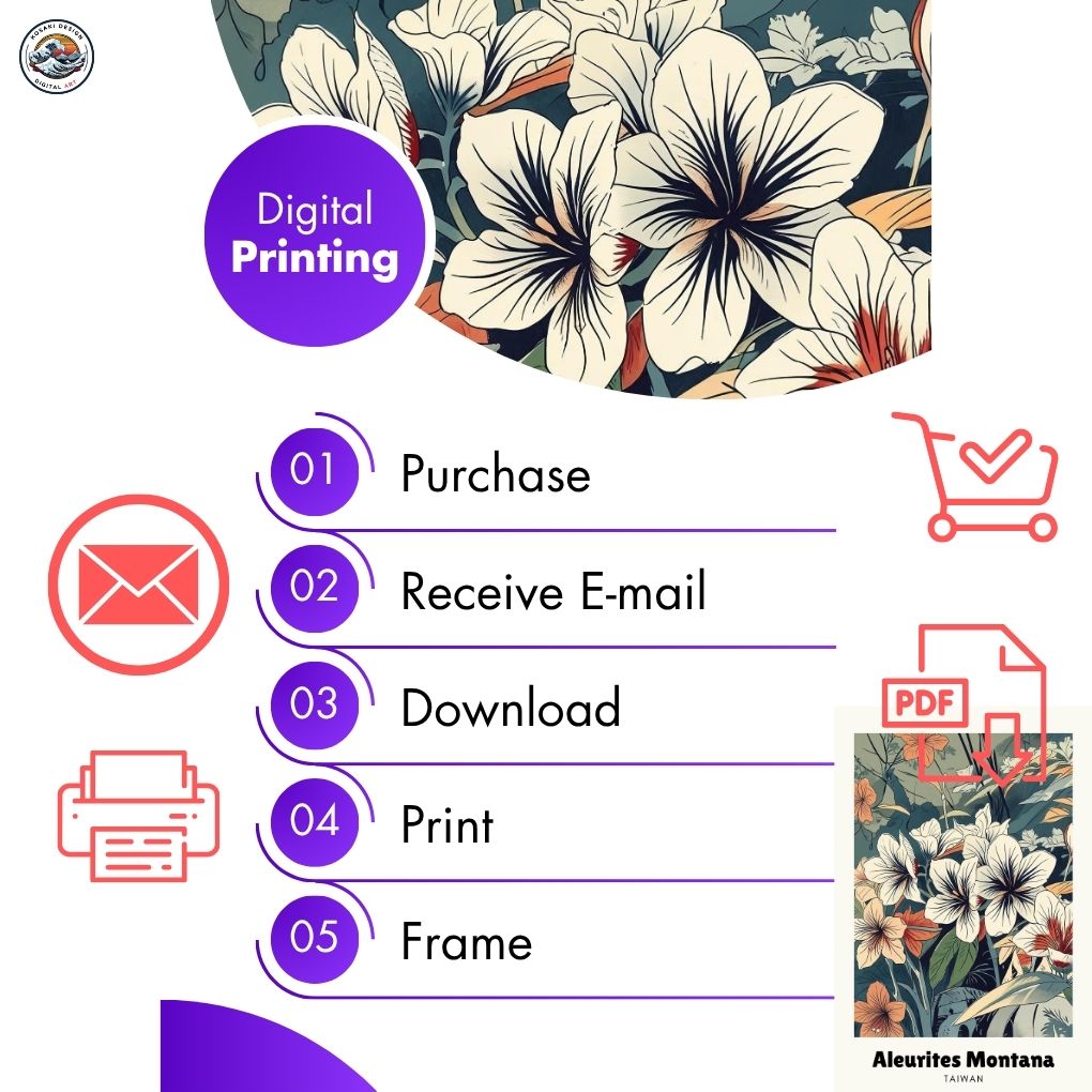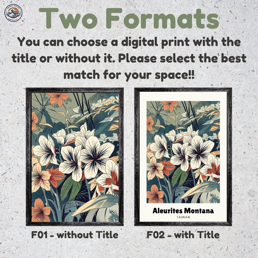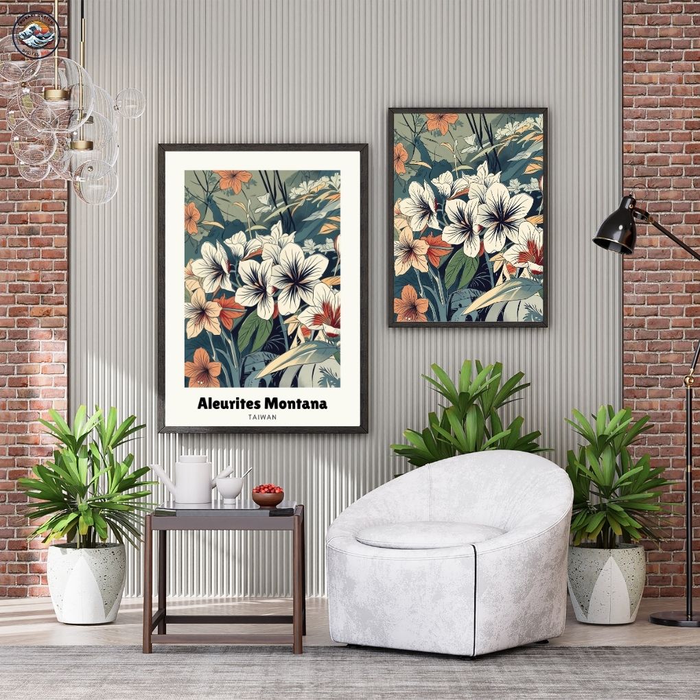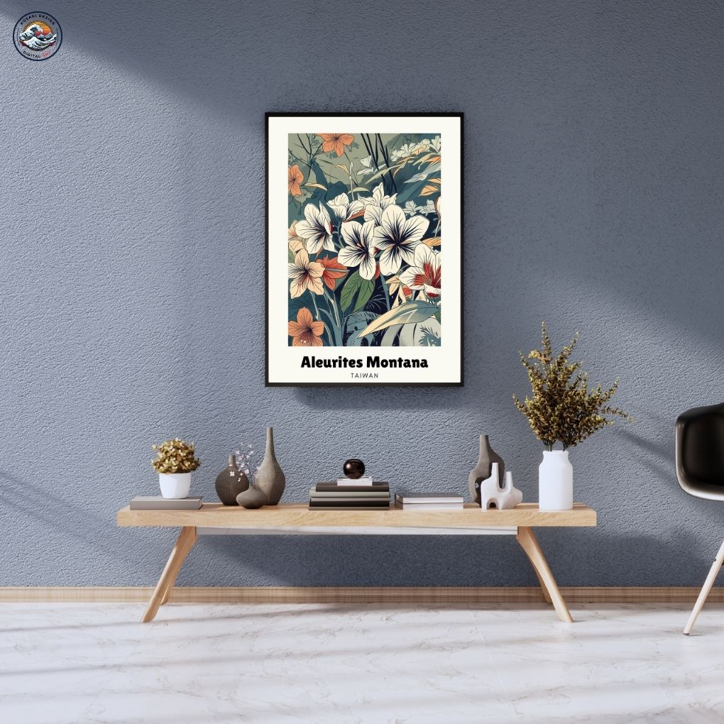 Walls dead? Download Taiwan Hsinchu Aleurites Montana Art. Bedroom, office, living room, kitchen – blast them with vibrant, instant art. Upgrade NOW. Enjoy this AI-generated product!!