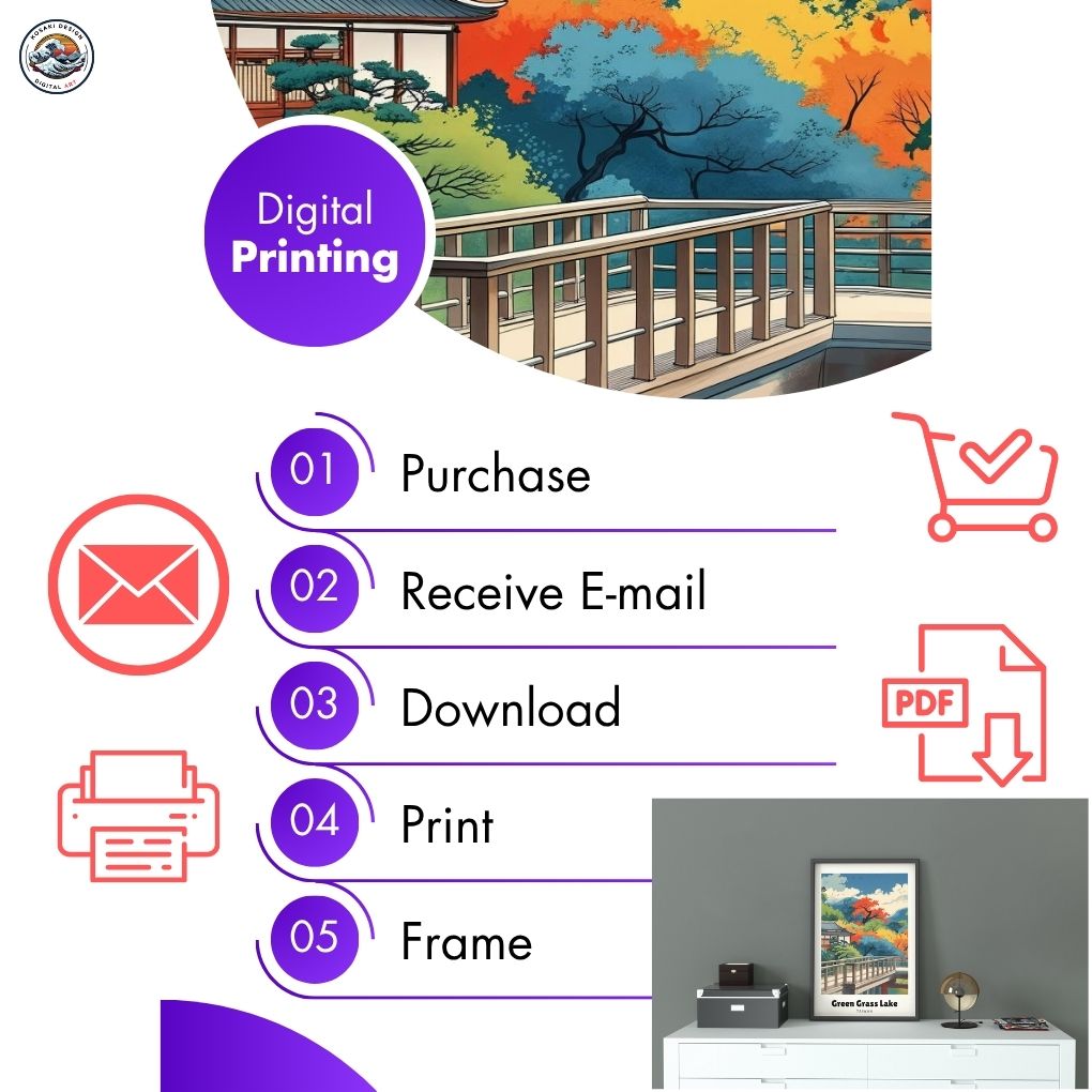 It's easy to print your digital prints! First, download the files (our guide after purchase will show you how). Then, print at home using a good printer and paper. For larger prints or better quality, you can also use a professional service. For a great look that's also affordable, we suggest printing on heavyweight textured matte paper or card stock.
