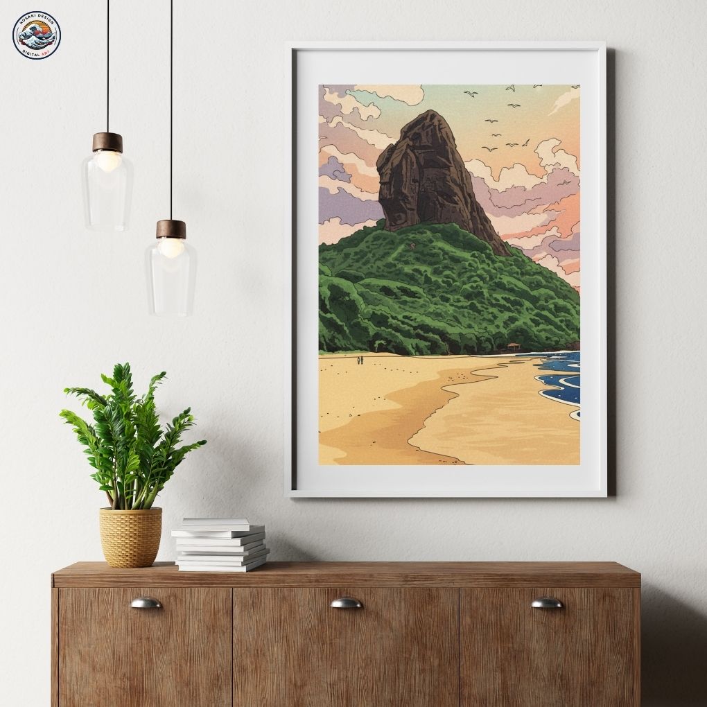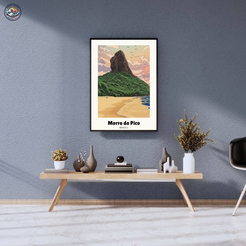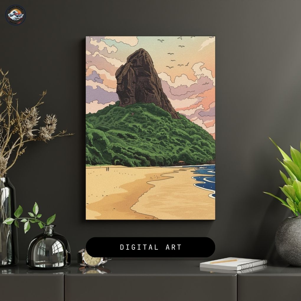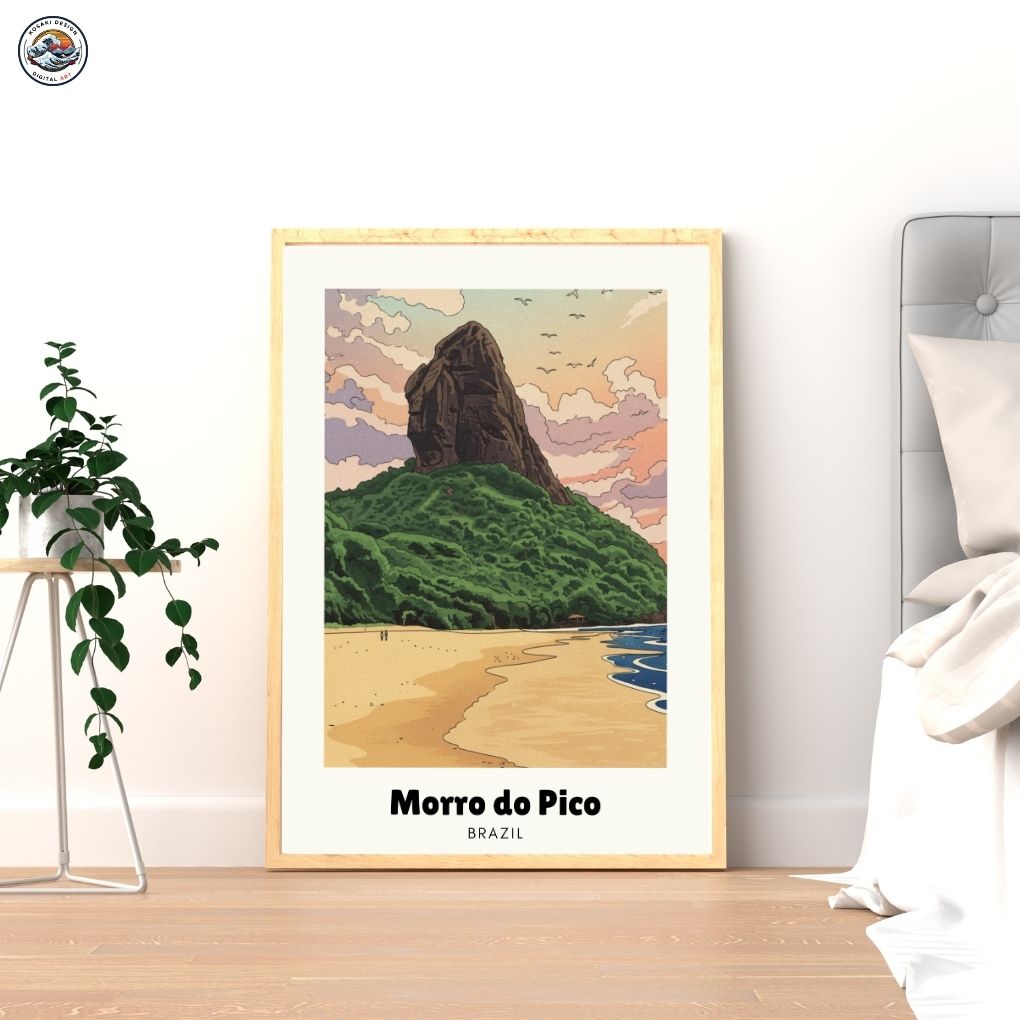 Walls dead? Download Brazil Morro do Pico Art. Bedroom, office, living room, kitchen – blast them with vibrant, instant art. Upgrade NOW. Enjoy this AI-generated product!!