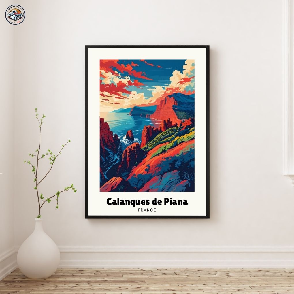 Banish boring walls NOW! France Calanques de Piana Art's downloadable collection is your weapon against visual monotony. Download high-resolution brilliance and detonate color and life across your home – bedroom, office, living space, kitchen – everywhere! Instant access. Instant impact. Redefine your reality, one download at a time! Enjoy this AI-generated product!!