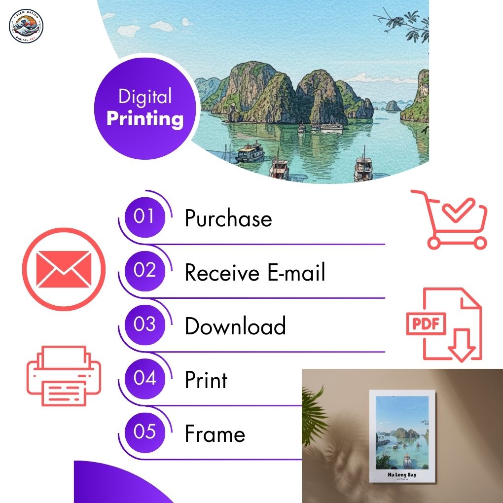 Kidnap your walls and drag them to the breathtaking beauty of our bestselling Ha Long Bay PRINTABLE Wall Art! Featuring iconic Vietnam's escapes, this digital download is your instant portal to envy-inducing style. Forge a gallery wall so stunning, it's practically illegal. Your Vietnam obsession starts NOW – download before it's too late!