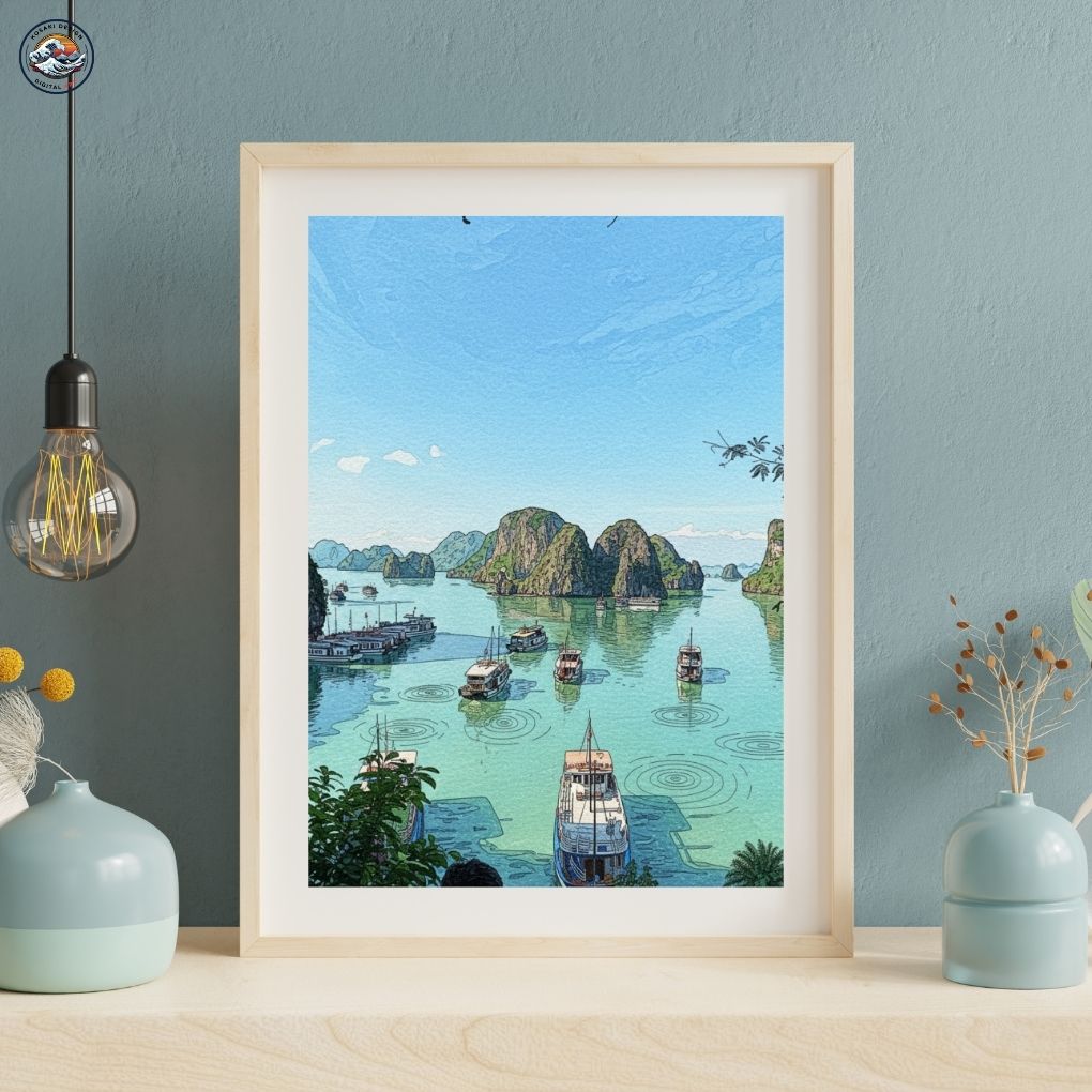 Your walls are screaming for an upgrade. Shut them up with Vietnam Ha Long Bay Art's exclusive digital prints. Bedroom? Office? Living room? Even that sad kitchen? Drench them in vibrant, high-res art with instant download gratification. Stop living in visual purgatory – download the extraordinary and finally have a space that doesn't suck! Enjoy this AI-generated product!!
