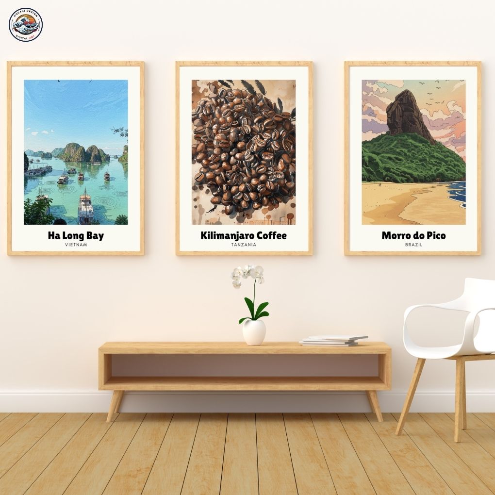 Discover the beauty of global destinations through our stunning AI digital download prints, available instantly. Meticulously crafted and enhanced with a slightly textured background that adds warmth and unique character, these artworks transform your home or office.