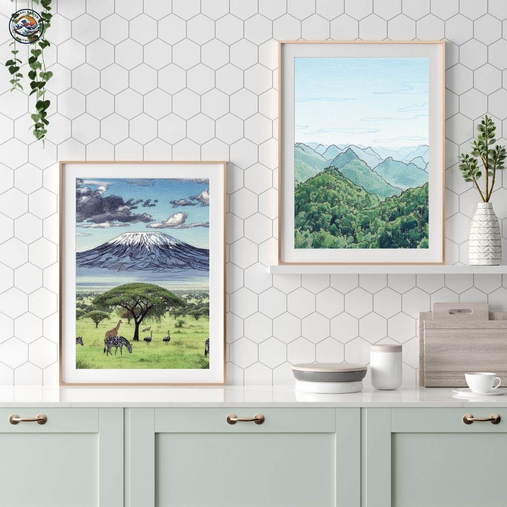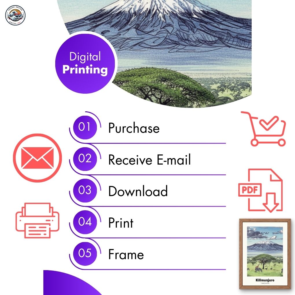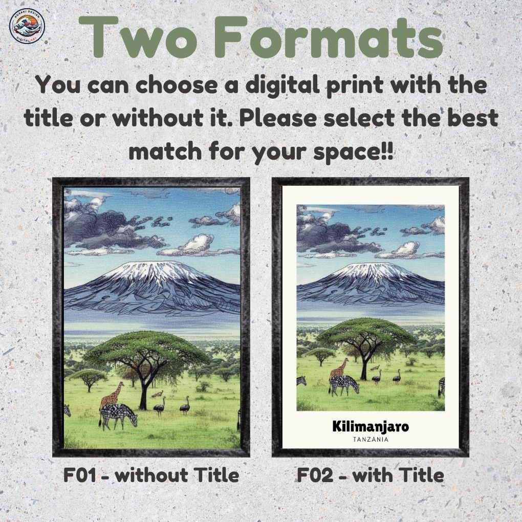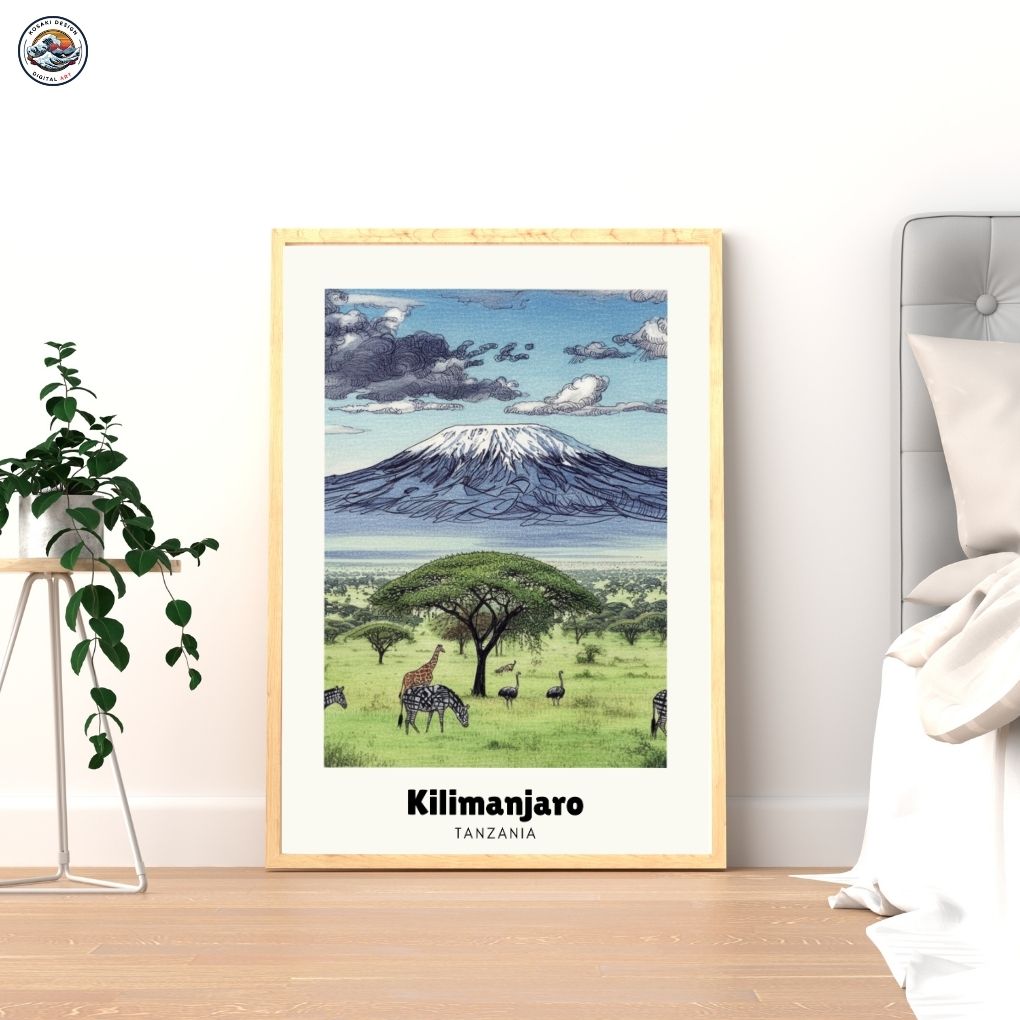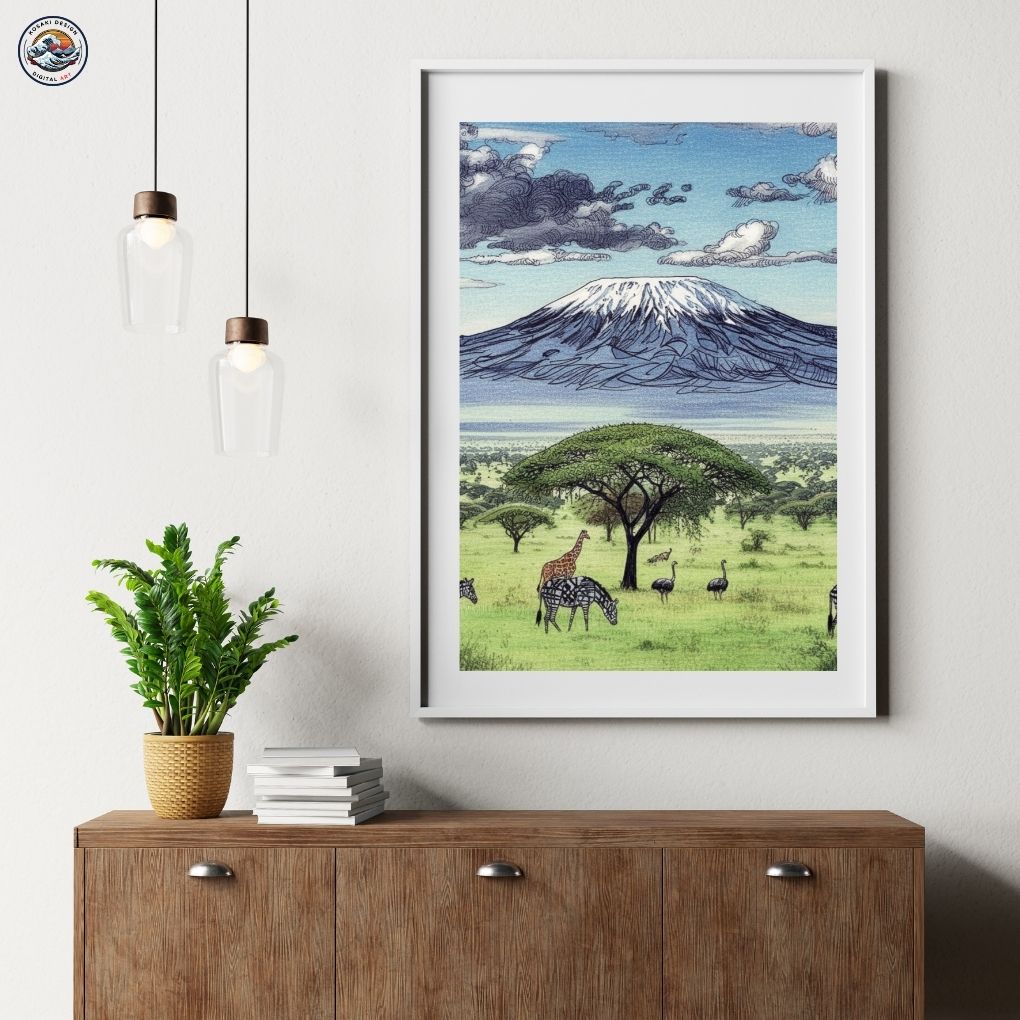 Sick of staring at blank boredom? Inject your walls with a potent dose of our bestselling Kilimanjaro Giraffe PRINTABLE Wall Art! Featuring iconic Tanzania's hotspots, this digital print is the ultimate space-lift cheat code. Instantly assemble a gallery wall so captivating, it'll make your neighbors weep with envy. Get your fix of timeless Tanzania's allure – download now or forever hold your peace!