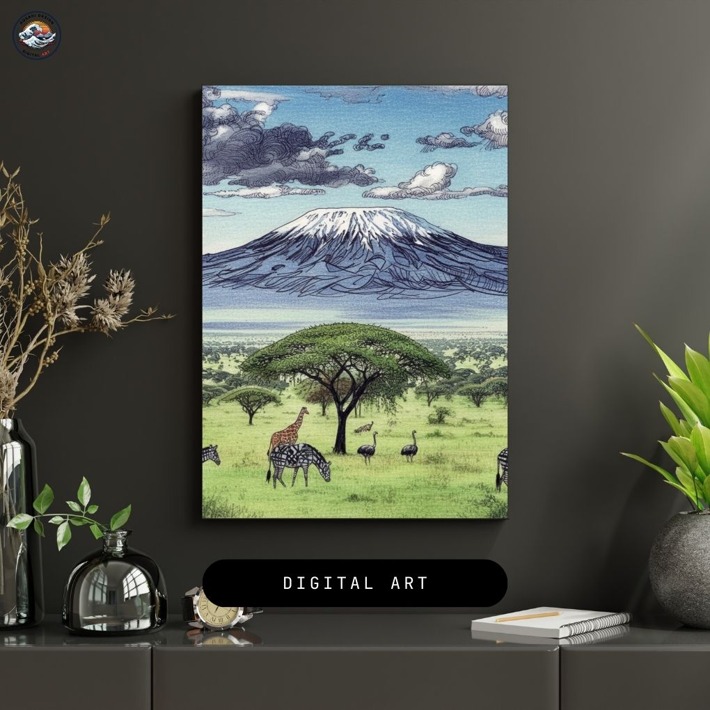 Unleash the untamed beauty of Tanzania's Kilimanjaro Giraffe Art upon your bland walls! Snatch your exclusive digital masterpieces and inject raw vibrancy into every dead corner – bedroom, office, living room, even the forgotten kitchen. Instant download means instant transformation. Your space is begging for this artistic shockwave! Enjoy this AI-generated product!!