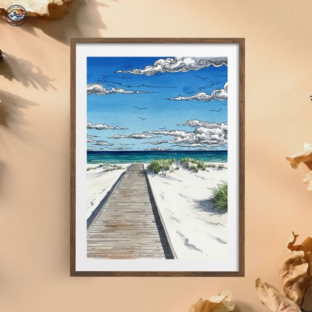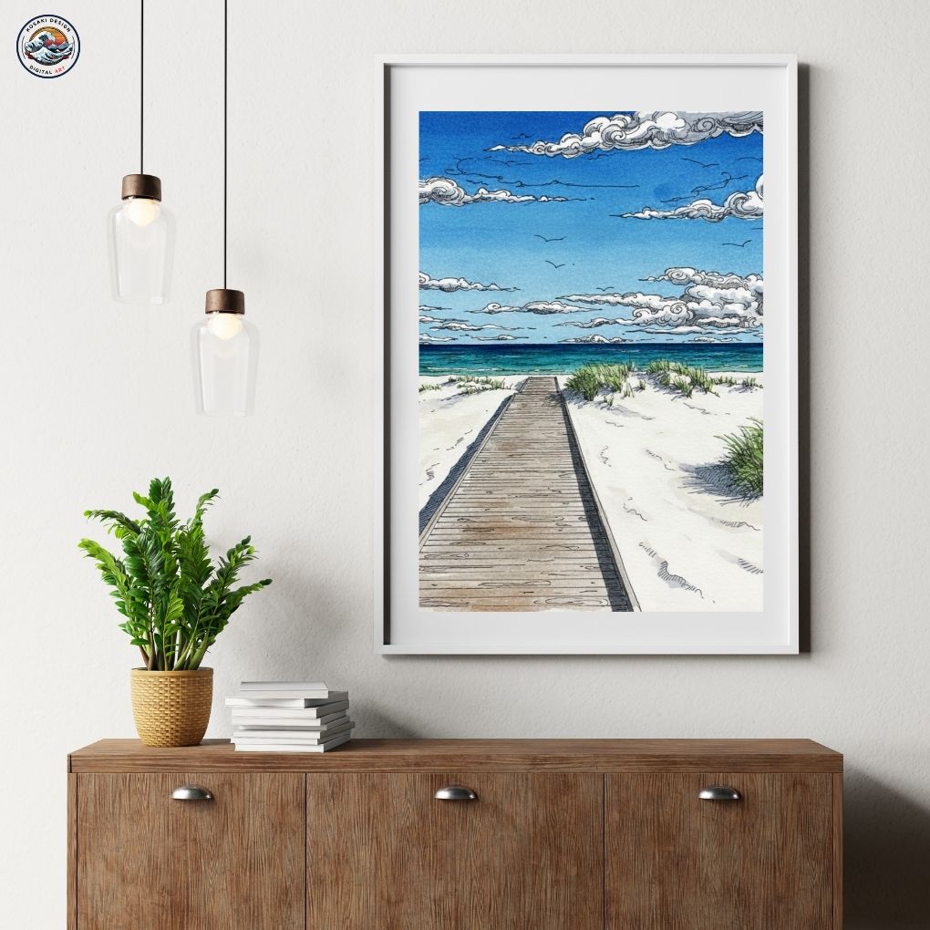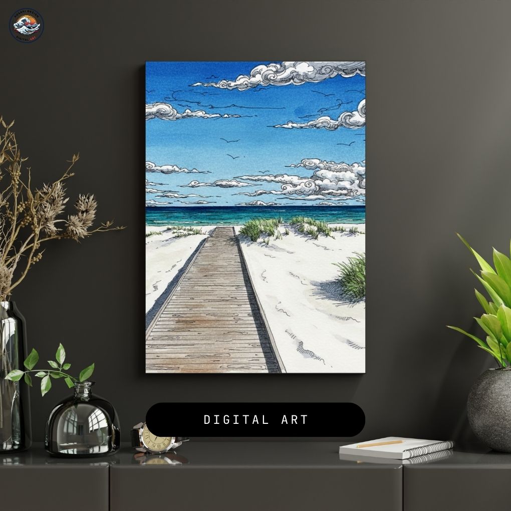 Walls dead? Download Denmark Bornholm Dueodde Beach Art. Bedroom, office, living room, kitchen – blast them with vibrant, instant art. Upgrade NOW. Enjoy this AI-generated product!!