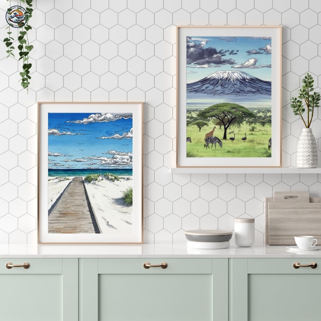 Discover the beauty of global destinations through our stunning AI digital download prints, available instantly. Meticulously crafted and enhanced with a slightly textured background that adds warmth and unique character, these artworks transform your home or office.